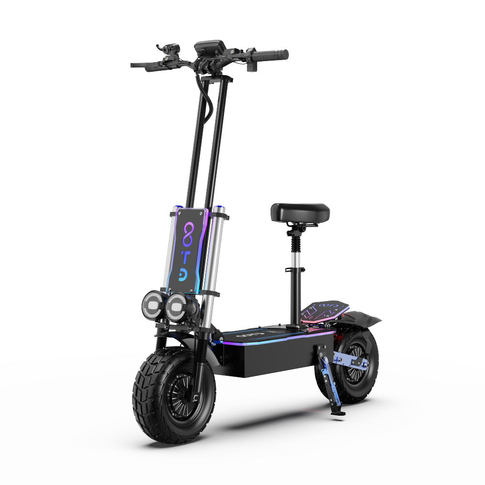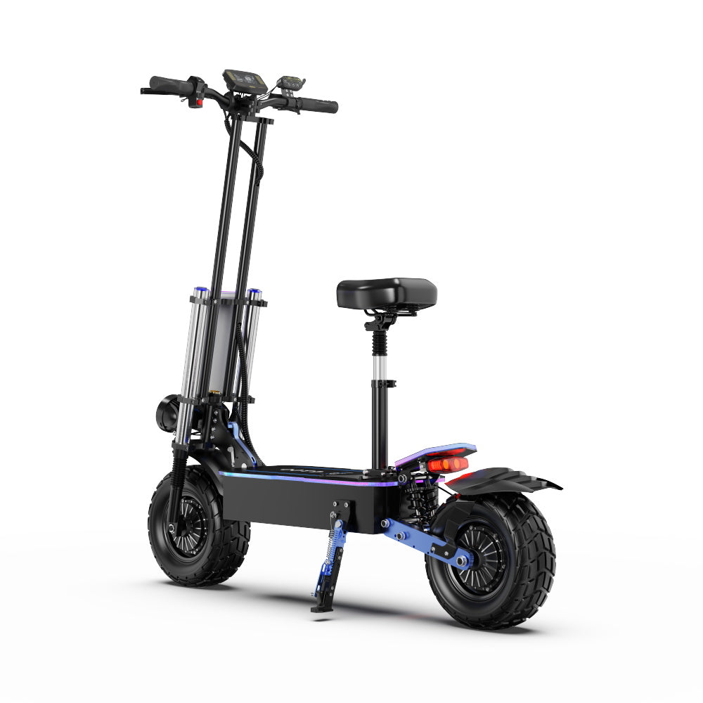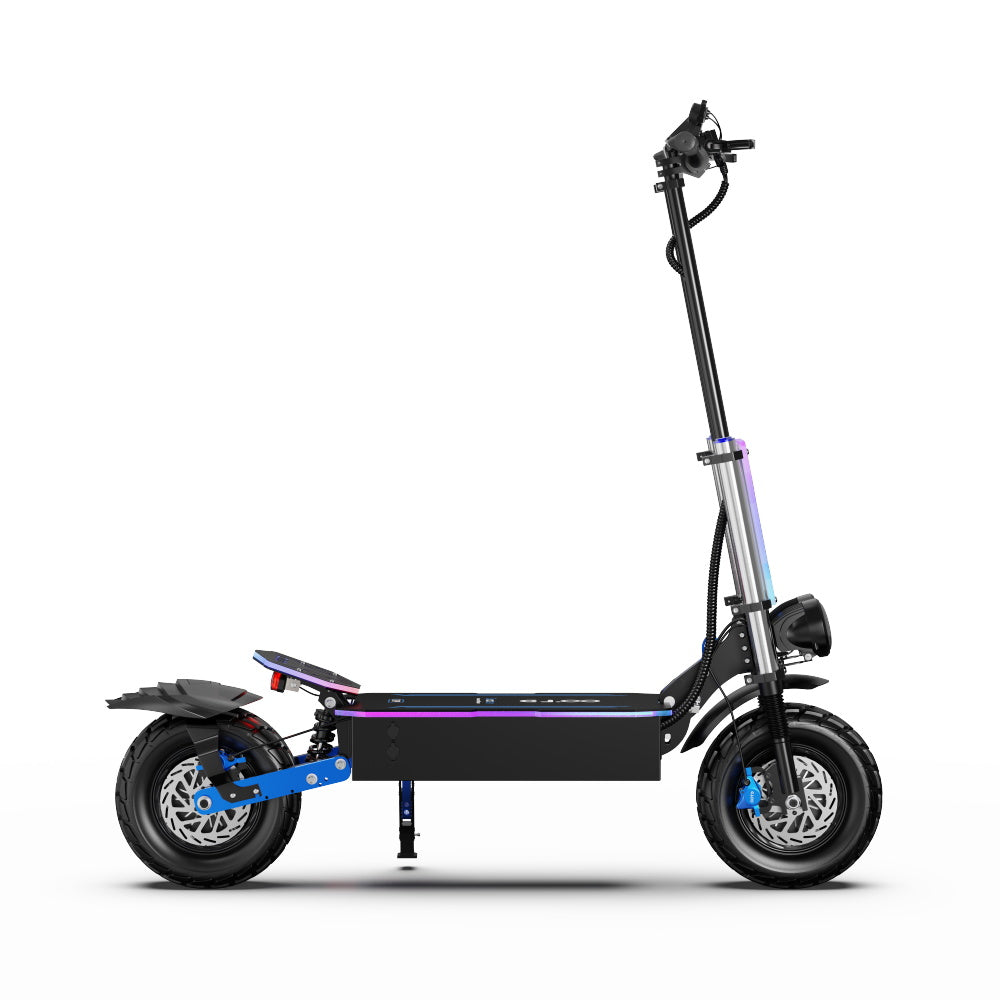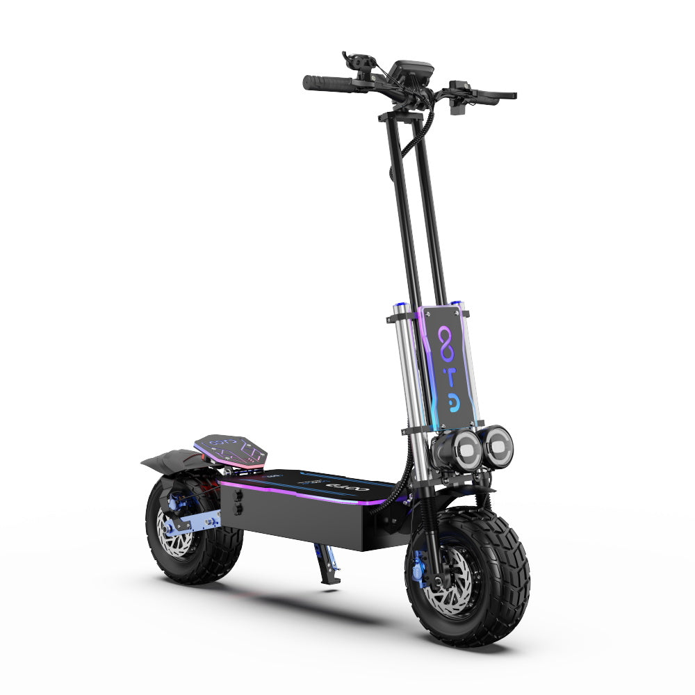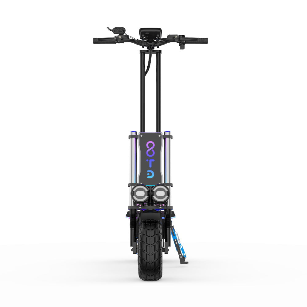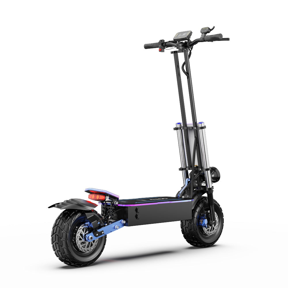 Trottinette électrique bimoteur hautes performances, conçue pour les trajets longs et les terrains exigeants. Puissance brute, grande autonomie et sécurité renforcée.