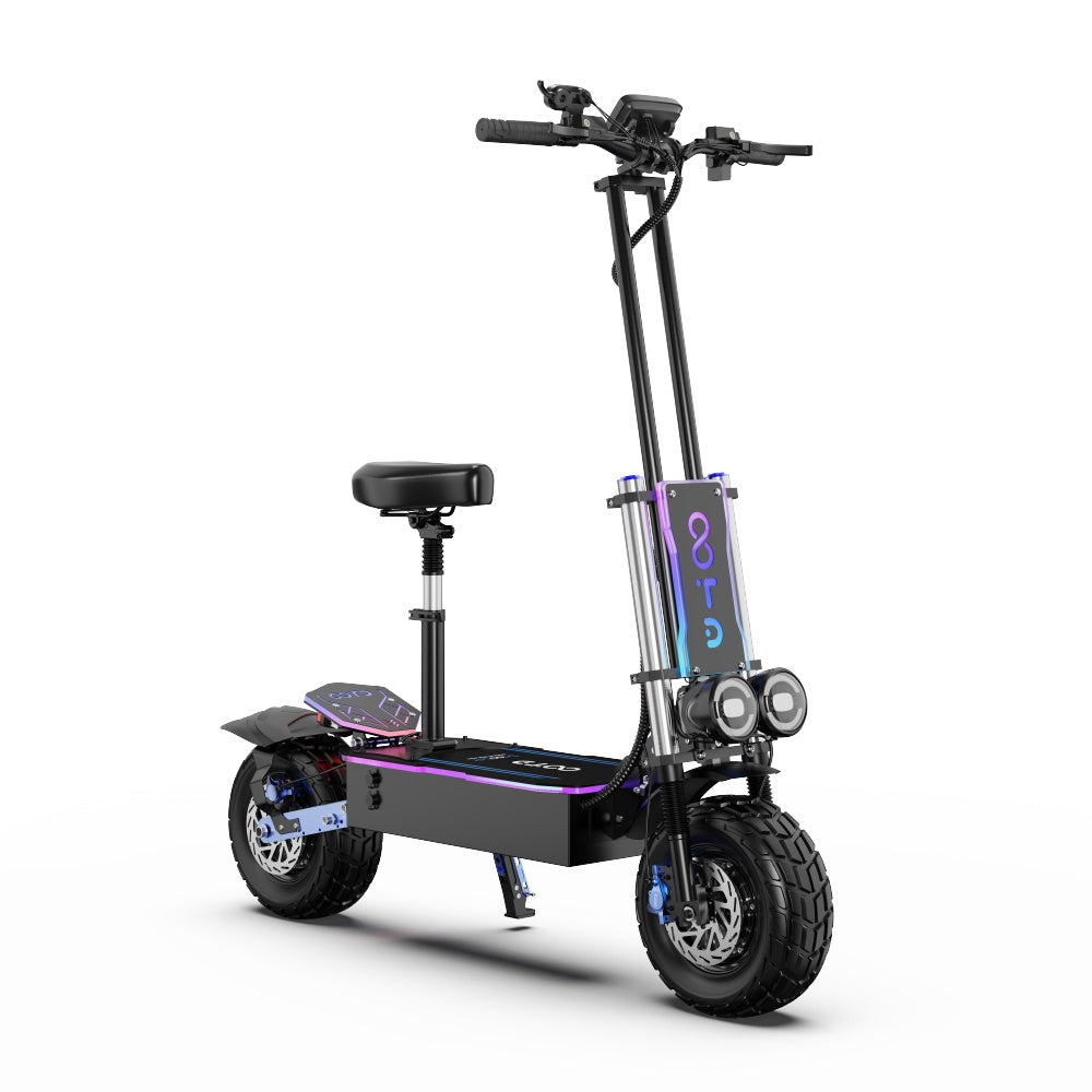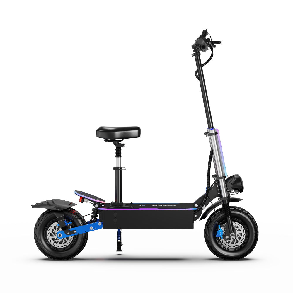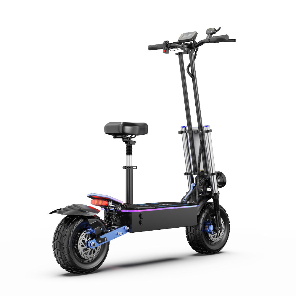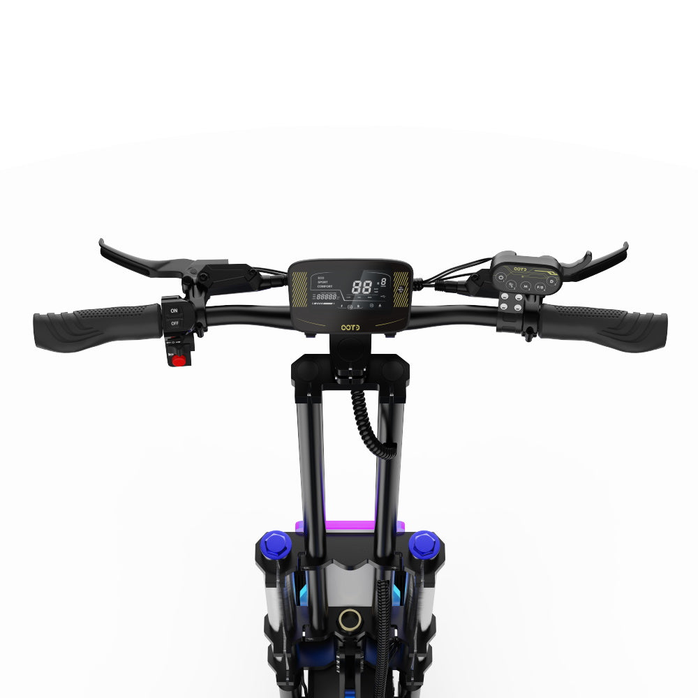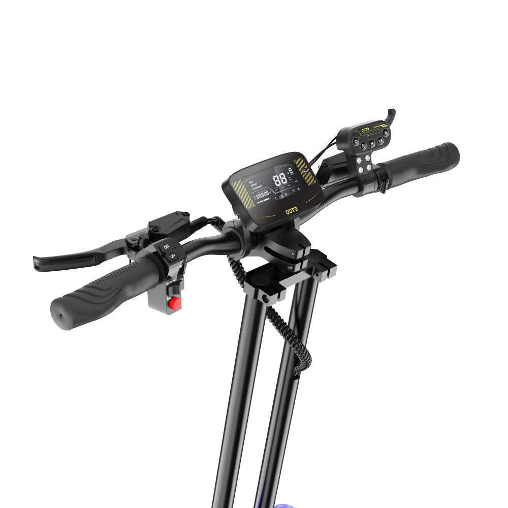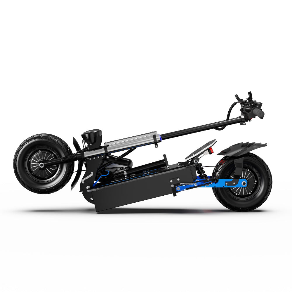 Trottinette électrique bimoteur hautes performances, conçue pour les trajets longs et les terrains exigeants. Puissance brute, grande autonomie et sécurité renforcée.