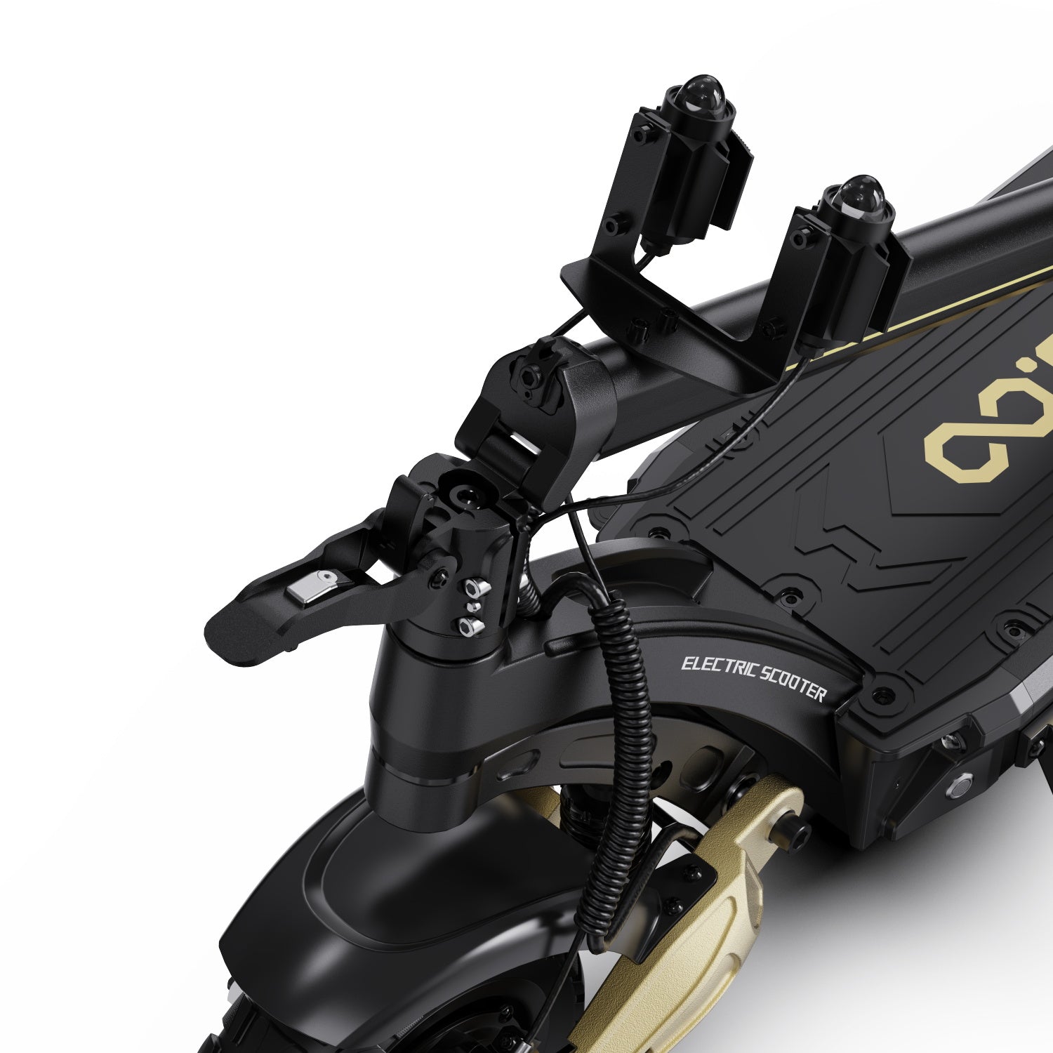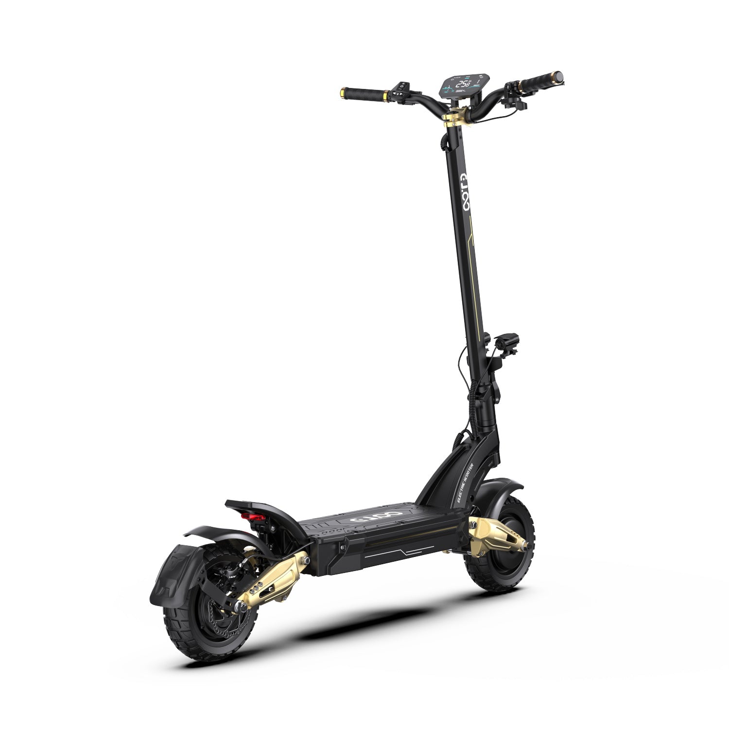 Trottinette électrique double moteur, conçue pour des performances soutenues : accélération puissante, autonomie élevée et sécurité renforcée grâce aux freins hydrauliques et à la suspension double.